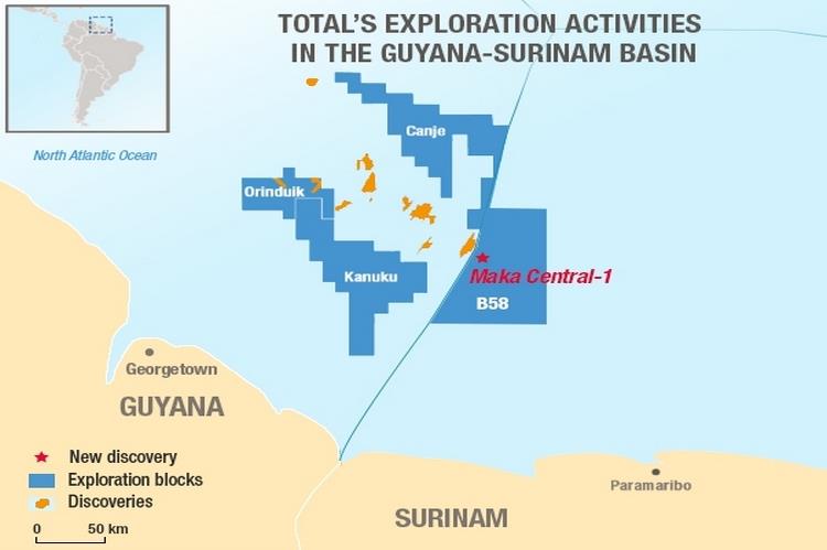 Desde o início de 2020, houve várias descobertas de petróleo na costa do Suriname. O primeiro no bloco 58 offshore do Suriname foi feito pela Apache e 50% do parceiro TotalEnergies no início de janeiro de 2020 no poço Maka Central-1, que encontrou 164 pés ou 50 metros de óleo leve e condensado de gás.